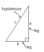The side opposite of the right angle is called the hypotenuse. The sides adjacent to the right angle are the legs. When using the Pythagorean Theorem, the hypotenuse or its length is often labeled with a lower case c. The legs (or their lengths) are often labeled a and b.