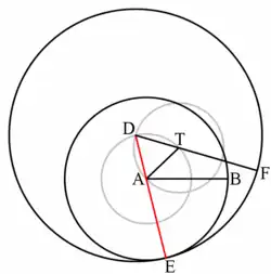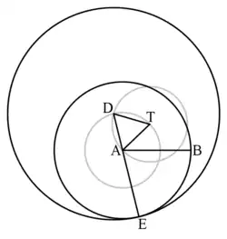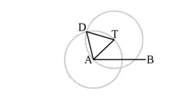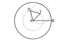 We use the notation for the circle whose centre is the point A and its radius length equals that of the segment .