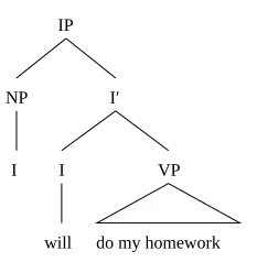 As the inflection is a functional category, this type of structure is called a functional projection, contrasted with lexical projection. Here is an example of IP:
