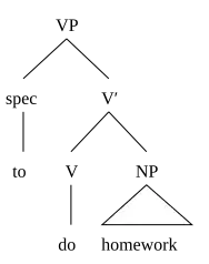 There must be some mysterious lexical category that serves as the head of the sentence. What could it be? Firstly, we should look at the word to. You might be tempted to think that to is simply a specifier: