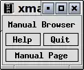 For example, a typical "xterm" window contains a scroll bar and the emulated screen of the terminal. The "xman" program, for viewing manual pages, contains three widgets of buttons on its tiny main screen. By using the "Manual Page" button, you obtain a larger window with several widgets: menu buttons, a scroll bar, and a text box containing the manual page.
