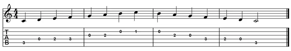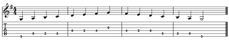 Anti-clockwise the root note of each scale forms the interval of a fourth with the root note of the following scale.