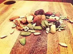 cashews, linseeds, sunflower and pumpkin seeds, dried fruits (cranberries, apricots, apple)) |