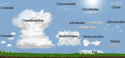| High clouds: | Cirrocumulus (Cc) | Cirrostratus (Cs) | Cirrus (Ci) |