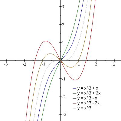 - Use a graphing calculator to graph the functions y = x3 + x, y = x3 + 2x, y = x3 − x, and y = x3 − 2x. What is the effect of changing the coefficient on the second term?