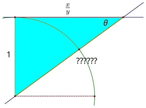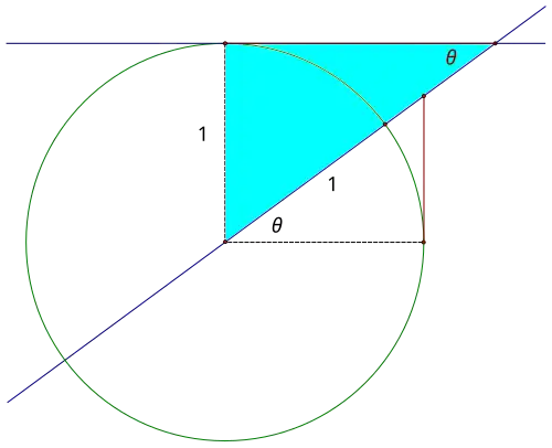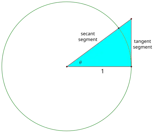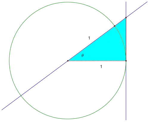 The dashed segment is 1 because it is the radius of the unit circle. Recall that the tangent of θ is , so we can verify that this segment is indeed the tangent by using similar triangles.