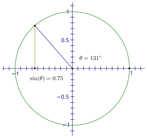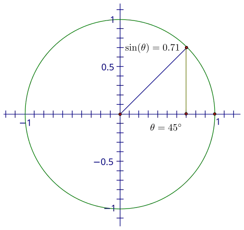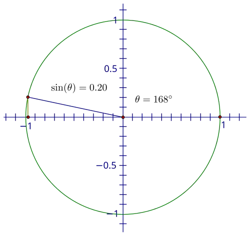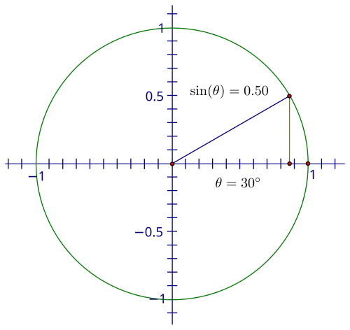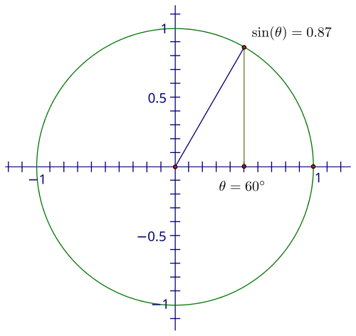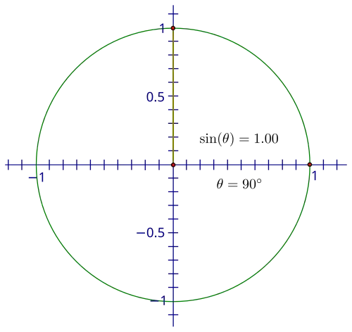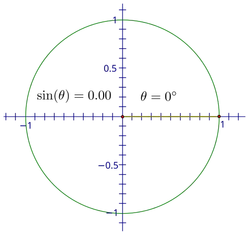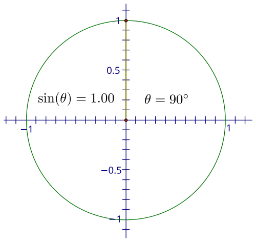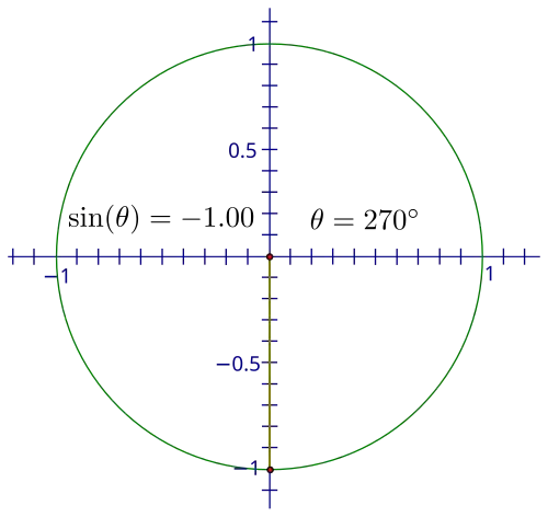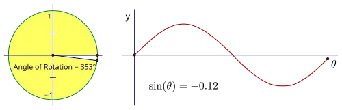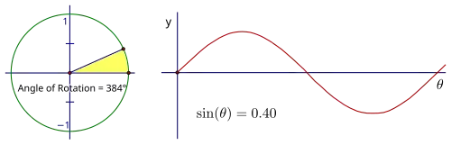 The value of sin(θ) goes from 0 to 1 to 0 to −1 and back to 0. Graphed along a horizontal axis showing θ, it would look like this: