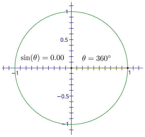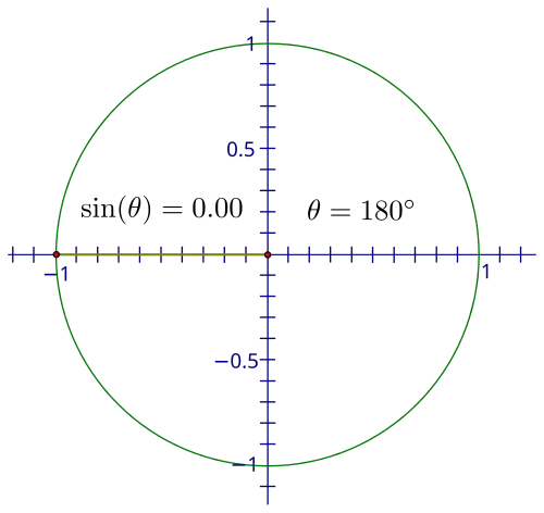 After passing this point, the periodic behavior kicks in and the function now repeats the same sequence of values as we rotate from 180°, back to 360°.