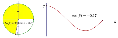In this lesson you will view the trigonometric ratios of angles of rotation around the coordinate grid as a continuous, circular function. The connection will be made between how the ratios change as the angle of rotation increases or decreases, and how the graph of the function depicts that change.