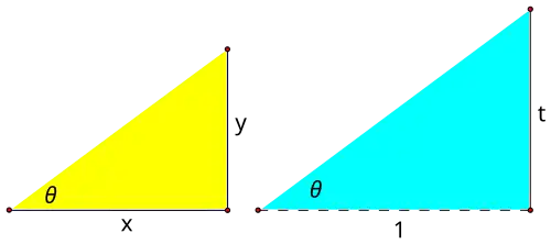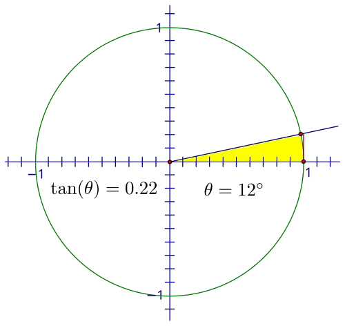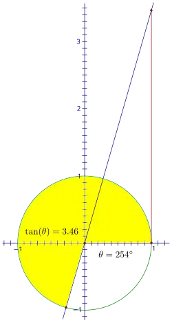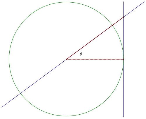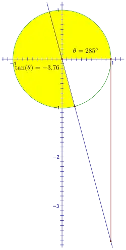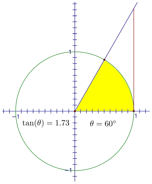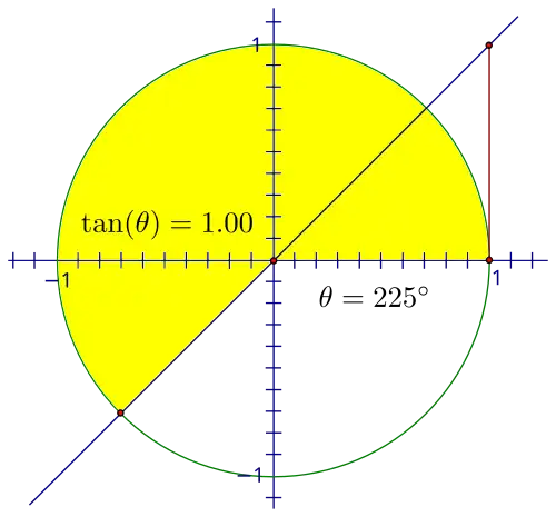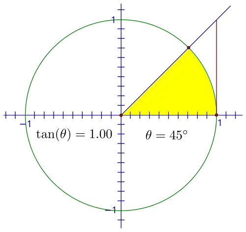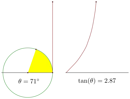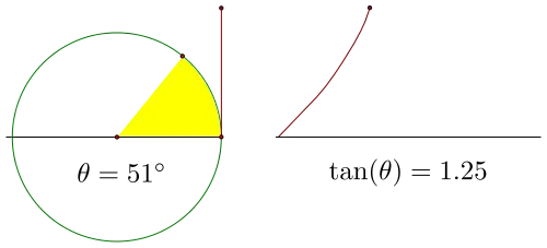 If we extend angle θ through the unit circle so that it intersects with the tangent line, the tangent function is defined as the length of the red segment.