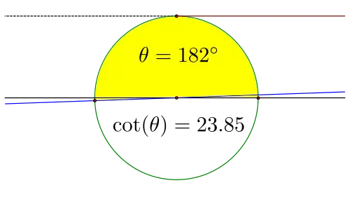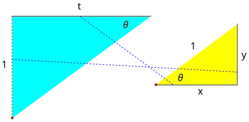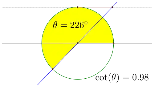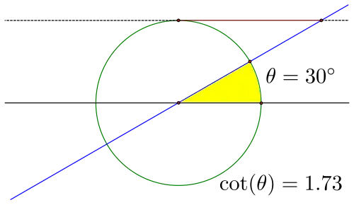 We can verify that this is the case again by using similar triangles. Because the purported cotangent segment is parallel to the base of the yellow triangle, then angle θ is in the opposite corner and the triangles are indeed similar, even though their positions are reversed.