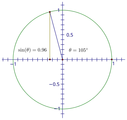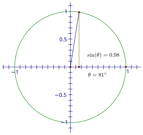 By now, you have become very familiar with the specific values of sine, cosine, and tangents for certain angles of rotation around the coordinate grid. In mathematics, we can often learn a lot by looking at how one quantity changes as we consistently vary another. In this case, what will happen to the value of, let's say, the sine of the angle as we gradually rotate around the coordinate grid. We would be looking at the sine value as a function of the angle of rotation around the coordinate grid. We refer to any such function as a circular function, because they can be defined using the unit circle. First of all, you may recall from earlier sections that the sine of an angle in standard position in the coordinate grid is the ratio of , where y is the y-coordinate of any point on the angle and r is the distance from the origin to that point.