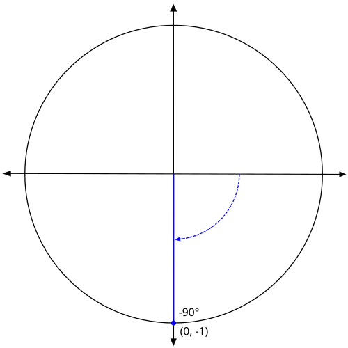 Recall that graphing a negative angle means rotating clockwise. The graph below shows -30°.