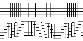 The image to the right shows the motion of P-waves (top) and S-waves (bottom) for a horizontally travelling wave. Look carefully at the picture of P-waves. If you focus on any particular vertical line, you will see that it is merely oscillating from side to side: it is the regions of compression that are moving from left to right, while the medium itself has no net motion. Similarly in S-waves, it is the displacement that moves from left to right, while the medium through which the waves move exhibits no such motion.