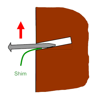 The wax paper shimming method[2][3] relies on small strips of wax paper inserted into the axle holes to change the angle of the axle. Cut a few dozen strips of wax paper 1/8" by 1/2". Bend the shim slightly along the long axis and insert it into the axle hole 1/8" and bend it back along the car body. Place the shim on the side of the axle opposite to the direction you want the axle to move. For example, if the axle is canted downward and you want to angle it back up, place the shim(s) at the bottom of the axle (6 o'clock position). If the axle is canted forward, shim forward, if it is canted backward, shim back. If the axle is tilted upward, place the shim at the 12 o'clock position.