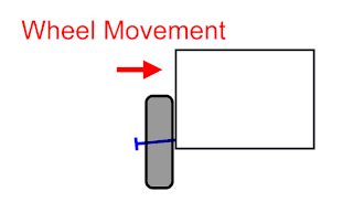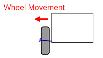 Once the car tracks straight, observe the "IN-OUT" behavior of the wheels. Here, IN is toward the body and OUT is away from the body. Perform two trials with the car facing forward. First, move the wheel in to touch the body and roll (or let the car roll) down the slope. Next, move the wheel to the end of the axle and repeat the forward trial. If the wheel moves from the inside to the outside, and stays at the outside when starting there, the result of this trial is OUT. Likewise, if the wheel moves from the outside to the inside, and stays at the inside when starting there, the result of the trial is IN. If the wheel stays put each time, the axle is aligned or nearly aligned.