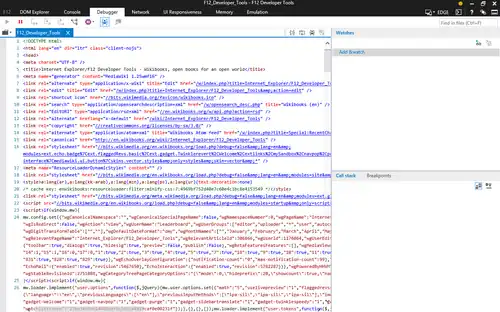 This is one of the most important Developer Tools feature of Internet Explorer. As the picture shows, this feature allows users to have full debugging controls over webpages. You can individually select web parts(like JS files) and debug, but the changes(if any) that you make cannot be permanent.