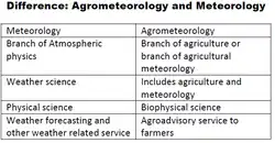 Agrometeorology or Agricultural meteorology studies meteorological and hydrological factors in relation to agriculture. Agrometeorology studies the behaviour of the weather elements that have direct relevance to agriculture and their effect on crop production.