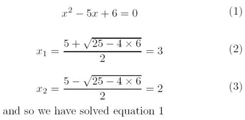 x_1 = \frac{5 + \sqrt{25 - 4 \times 6}}{2} = 3