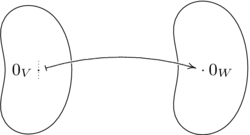Again in this drawing, the vectors that map to lie in the domain in a vertical line (only one such vector is shown, in gray). Call any such member of this inverse image a " vector". Similarly, there is a vertical line of " vectors" and a vertical line of " vectors". Now, has the property that if and then . This says that the vector classes add, in the sense that any vector plus any vector equals a vector, (A similar statement holds about the classes under scalar multiplication.)