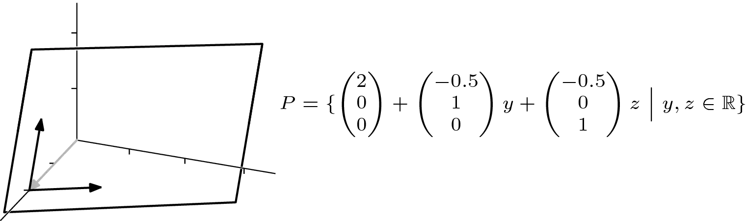 The translation from such a description to the vector description that we favor in this book is to think of the condition as a one-equation linear system and parametrize .