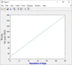 xlabel('Population of dogs','Color','b','FontWeight','bold','FontAngle','italic')