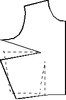 You do this in the following way: Draw an extra basic pattern. Draw it on transparent paper and cut it out. Make a mark where you want the new tuck, both on the pattern and on the transparent paper. Place the transparent paper on the pattern and the point of the pencil on the breast point, as shown on figure 2c. Fold the transparent paper as far down as the side tuck, make a mark on the shoulder where the mark on the transparent paper is now. Draw round the edge of the transparent paper from the mark and down to the original tuck. Then draw lines from the two marks on the shoulder and down to the breast point, so you make a new tuck.