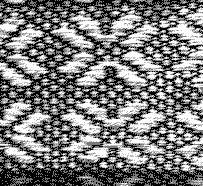 Figure 2 shows another pattern as it looks when knitted. Here you see that if you want more than one stitch in between, you may manage that by making dots; thereby the pattern becomes less compact.