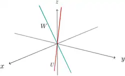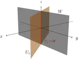 We have already calculated above that and the figure shows that and intersect in a straight line. This means that the dimension of is three, the dimension of and are both two and the dimension of is just one. So the dimension formula also holds in this case.