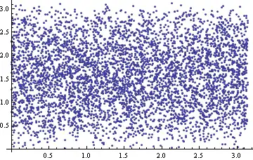 We see that the Jacobian matrix is rearranged, but in Jacobians, it is exactly equivalent, as it just depends on the order of specification of the directions and functions. The Jacobian determinant is independent of the longitude, theta, so our uniform distribution in spherical coordinates will be uniform in Cartesian space. However, phi will not be, as as it changes, the Jacobian also changes. r also does this, but as we can just deal with a unit sphere, we can cut it out of the equation now.