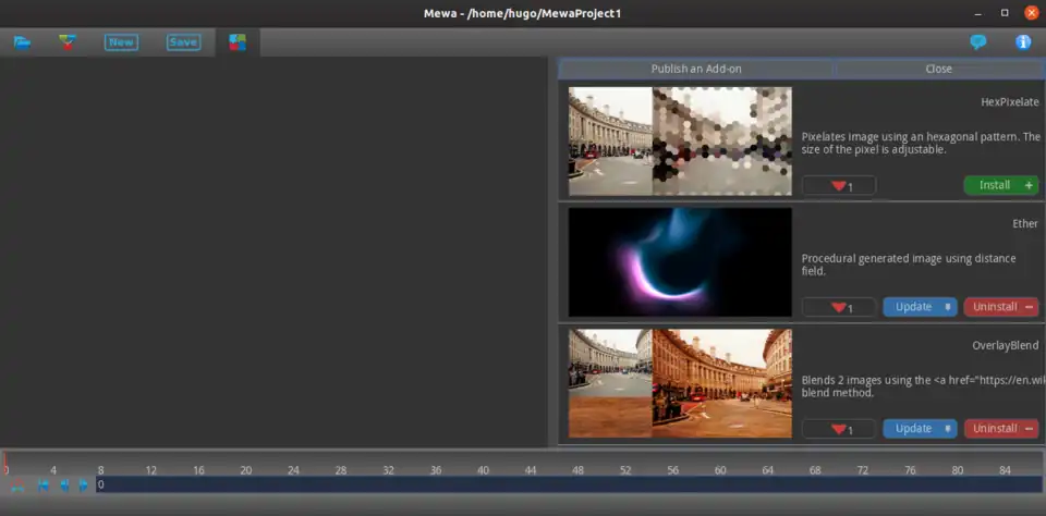 Mewa can be extended with nodes and other tools. These nodes and tools are available in Mewa Store.