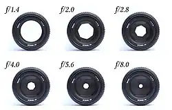 On strictly mechanical lenses, the user sets aperture by rotating an adjustment ring on the lens. While the shutter is released, a lever in the camera body pushes against a lever in the lens mount, causing the diaphragm blades to close at the chosen aperture setting. Lenses that offer electronic operation will pass control to the camera body, by means of a second lever.