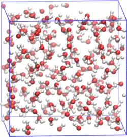 Macroscopic systems are extremely large and are, therefore, expensive to compute by molecular simulations. For instance, one gram of water has about 3 x 1022 molecules, a number too large to be calculated, even on computers. Fortunately, periodic boundary conditions enable us to mimic an infinite system by treating a relatively small part of a system to achieve a reasonable representation of the infinite system. The particles of this small subsystem are controlled by a set of boundary conditions called a unit cell (e.g., a three-dimensional box). During the simulation, particles are free to move in the central (original) cell; therefore, their periodic images of the adjacent cells move in an identical way. This means any particle that crosses one boundary of the cell, will reappear on the opposite side.