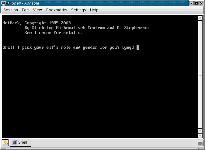 Press [y] to let the game pick randomly or press [n] to use menus to pick. (Press [q] to quit NetHack.) After choosing the character, the game introduces the plot: