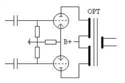 Fig.1 shows the trivial OPT connection i.e driven by the generator G thru two plate resistances rp (because of PP).