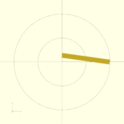 e=10; rotate([0, 0, $t*360]) translate([e, 0]) rotate([0, 0, -$t*720]) square([2*e, 2], center=true);