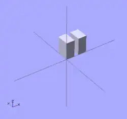 Notice that there is no semicolon following the translate command. This is because the translate command relates to the following object. If the semicolon was in place, then the effect of the position translation would end, and the second cuboid would be placed at the same position as the first cuboid.