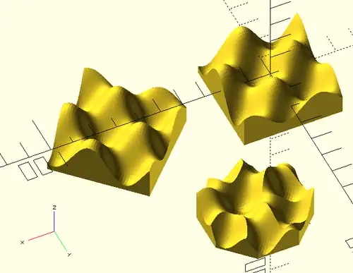 //surface.scad surface(file = "surface.dat", center = true, convexity = 5); %translate([0,0,5]) cube([10,10,10], center = true);