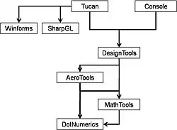 The actual potential flow and aeroelastic solver is contained in the OpenVOGEL.AeroTools library. The calculation core only uses the previously mentioned libraries, and contains general definitions that can be embedded in any external project without the necessity of the Tucan or the Console.