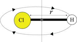 In quantum chemistry, the rigid rotor model is used to describe the rotations in molecules, such as HCl. The assumptions used in the rigid rotor model is that the rotating molecules is rigid, and the changes in bond length that naturally occur in a molecule (such as vibrational) is insignificant compared to the bond length re, and thus, negligible. [1]