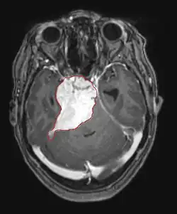 - Atypical meningiomas; 2009 (1993-2004) PMID 19145156 -- "Long-term recurrence rates of atypical meningiomas after gross total resection with or without postoperative adjuvant radiation." (Aghi MK, Neurosurgery. 2009 Jan;64(1):56-60; discussion 60.)