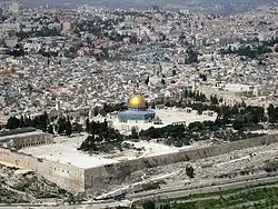 Many of the Templar legends are connected with the Order's early occupation of the Temple Mount in Jerusalem and speculation about what relics the Templars may have found there, such as the Holy Grail or the Ark of the Covenant.[45][10][47][48] That the Templars were in possession of some relics is certain. Many churches still display holy relics such as the bones of a saint, a scrap of cloth once worn by a holy man, or the skull of a martyr; the Templars did the same. They were documented as having a piece of the True Cross, which the Bishop of Acre carried into battle at the disastrous Horns of Hattin.[49] When the battle was lost, Saladin captured the relic, which was then ransomed back to the Crusaders when the Muslims surrendered the city of Acre in 1191.[50] The Templars were also known to possess the head of Saint Euphemia of Chalcedon,[51] and the subject of relics came up during the Inquisition of the Templars, as several trial documents refer to the worship of an idol of some type, referred to in some cases as a cat, a bearded head, or in some cases as Baphomet. This accusation of idol worship levied against the Templars has also led to the modern belief by some that the Templars practiced witchcraft.[52] However, modern scholars generally explain the name Baphomet from the trial documents as simply a French misspelling of the name Mahomet (Muhammad).[45][53]