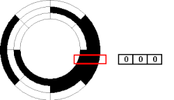 Gray code is a specific type of binary pattern in which there is only a single bit changing during a transition from one element to the next. Being a binary pattern, Gray codes use the same number of channels for the same number of specific patterns; they are just ordered differently. Binary uses patterns in a numerically sequential order; Gray code does not. Encoding positions using this method will require additional software or hardware to decode the ID (as a simple binary conversion will not yield a sequentially-ordered set of segments), but the benefits for the reliability of hardware are substantial – as only a single bit changes during each transition, then the maximum error in detected position for an error in pattern reception is 1 segment. Gray code can be written out bitwise in much the same way binary can. In binary, the least significant bit alternates from 0 to 1 every step; the next bit alternates every two steps, the next every four and so on. In Gray code, each bit holds a pattern of 0-1-1-0; the least bit holds each element for one step; the next bit holds each two steps, the next four and so on. It can be noticed that two-channel Gray code is identical to the two-channel pattern used to find rotational direction.