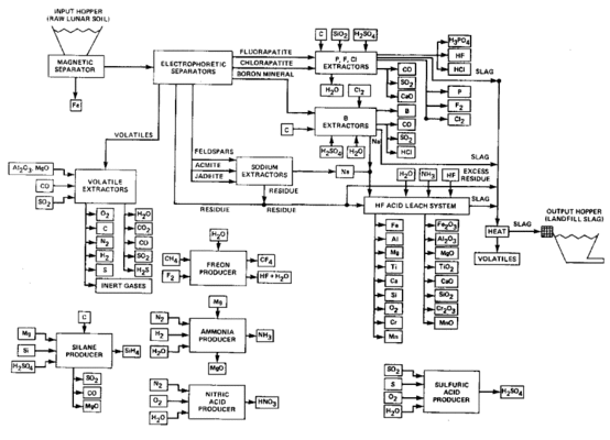 - (7) Process Plant - A variety of materials are typically needed in complex machines. Such materials are typically not found in the needed form in nature. They can be bought from others, but that increases costs and makes a system less able to self-expand.