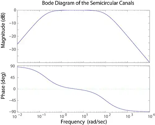 For typical head movements (0.2 Hz < f < 20 Hz), the system gain is approximately constant. In other words, for typical head movements the cupula displacement is proportional to the angular head velocity!