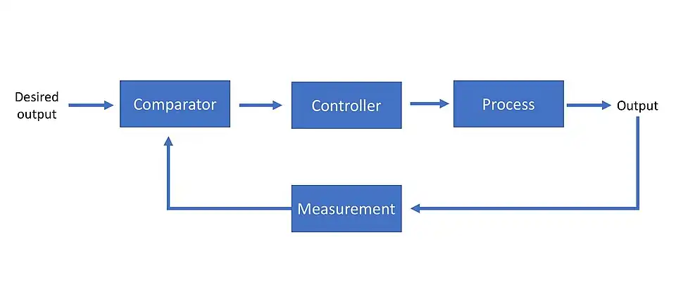 Open loop systems are probably the simplest of the control system family, as they do not take any feedback signal into account. Open systems use an actuating device, also called a controller, to control the process output. Closed loop systems are more complex, as they use measurement entity that feeds the output or feedback signal back into a comparator at the beginning of the loop. The comparator then compares the desired output with the feedback signal and thus sends a downstream message to the controller ordering him to take action for the maintenance of or approach to the desired output.[1]