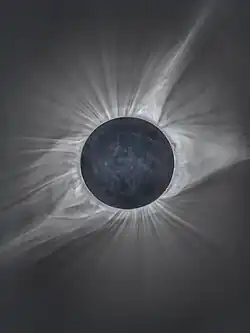 The Solar Corona becomes especially prominent during a solar eclipse, shown here.