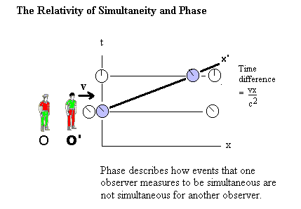 If then so, according to the Lorentz transformation the moving observer finds events to be simultaneous in the stationary inertial reference frame when , ie: when the elapsed time in the stationary frame is equal to the phase difference between the frames.
