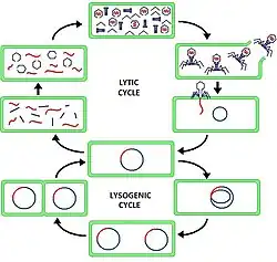 Bacteriophage can go through two main cycles: The Lytic and Lysogeny cycle.