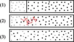 Passive Transport Molecules have a natural tendency to move and spread out evenly in any available space. This property is called diffusion. An example would be a drop of dye in a section of a beaker separated by a permeable membrane. In this case, the dye, although the molecules move randomly, would have a net movement across the membrane such that the concentration of dye on both sides would be equal. At that point, an equilibrium would be established with the same amount of dye molecules moving across the membrane in both directions. In other words, the natural tendency of any substance is to migrate down its concentration gradient.